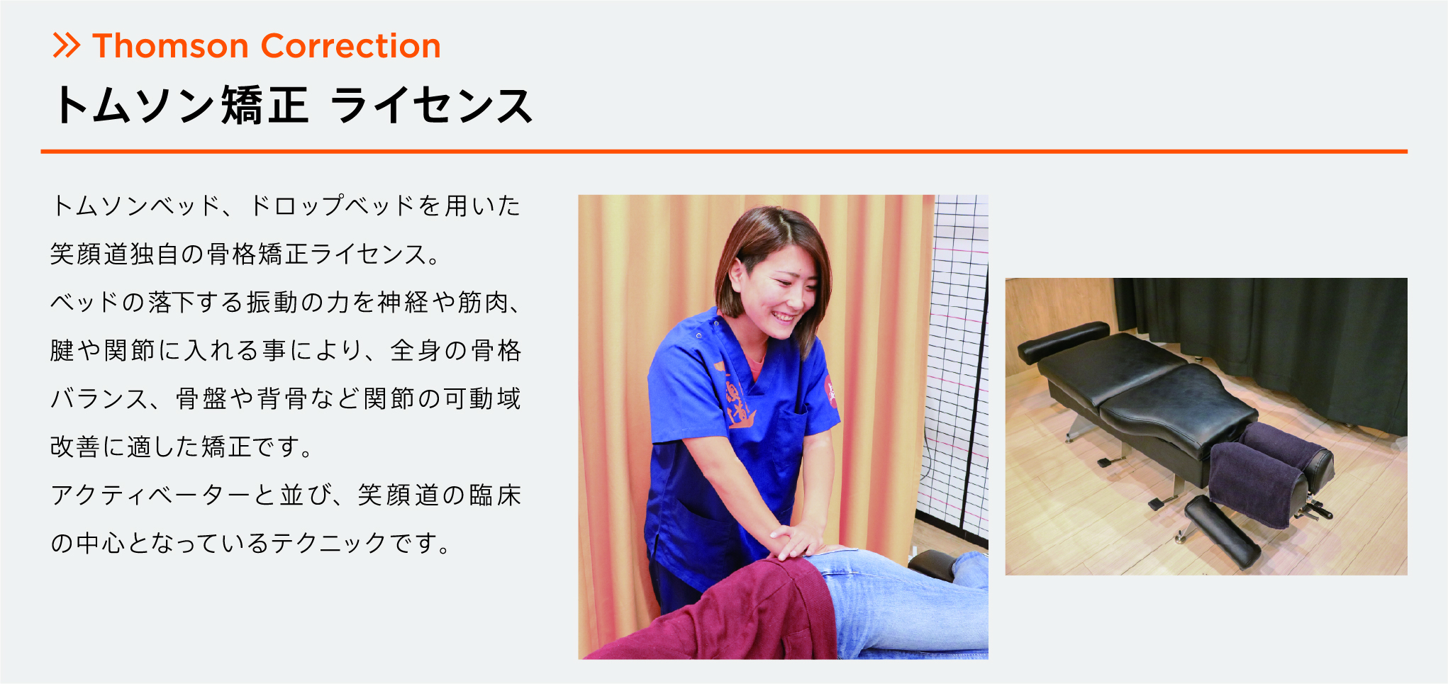 笑顔道様との関係は14年前に始まり、以後社内研修の講師を務めています。共に「本質と笑顔の追求」を掲げ、正しい評価・鑑別を基盤とした保存療法を共有しています。年間100回以上のセミナーを通じて、業界内外に広く技術を発信し続けています。笑顔道の先生方の真摯な姿勢と理念の共有に深く共感しており、今後も一緒に学び続けられることを楽しみにしています。