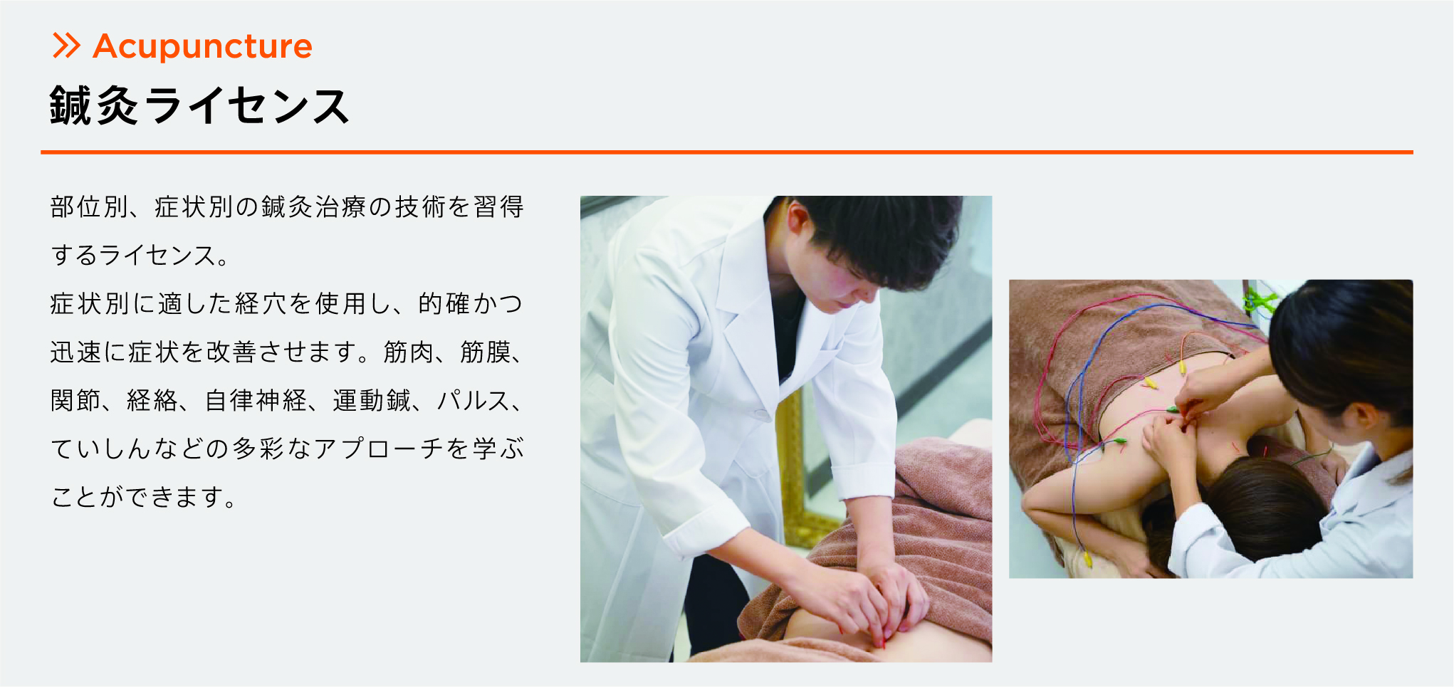 2016年より、美容鍼や鍼灸施術の外部講師として関わっています。当セミナーは、再現性を重視し、誰でも効果を出せるよう設計されています。特にパルスを用いたアプローチは、急性痛や深部筋への効果が高く、経験の浅い方にも習得しやすい内容です。実技を重視し、質問しやすい雰囲気で進めています。ぜひご参加いただき、地域で信頼される鍼灸師を一緒に目指しましょう。